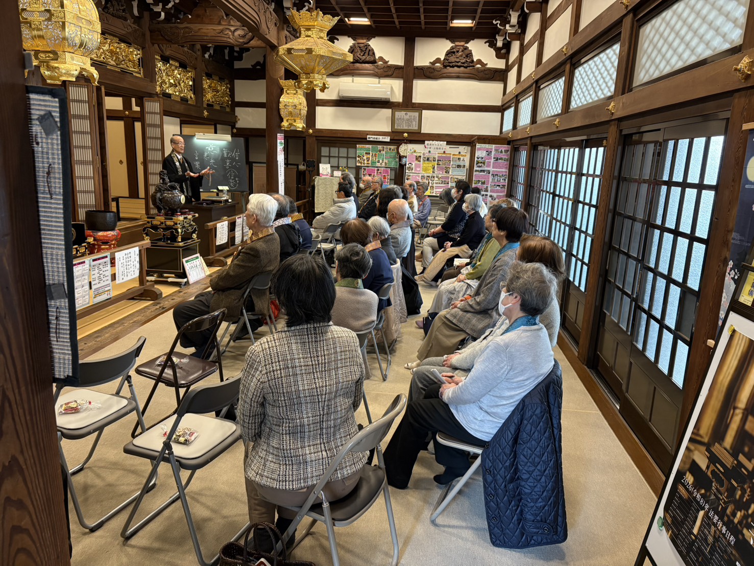 法要・法座 2026/03/20 春季彼岸会永代経法要’26のご報告 本日の春季彼岸会永代経法要、お天気も良く、多くの方が遠近各地より多くの方が御参詣くださいました。 貴島先生の笑いながらも心に刺さるお話は時間も忘れる有難いご縁でした。法要にお参りできるのも自分だけのちからではなく、阿弥陀さまはもちろん、亡き先人からいただいた多くのご縁が重なったからこそ出来たお聴聞であると、改めてお聞かせいただきました。 本日の詳しい様子はPDFをタップするとご覧いただけます。 PDF 戻る