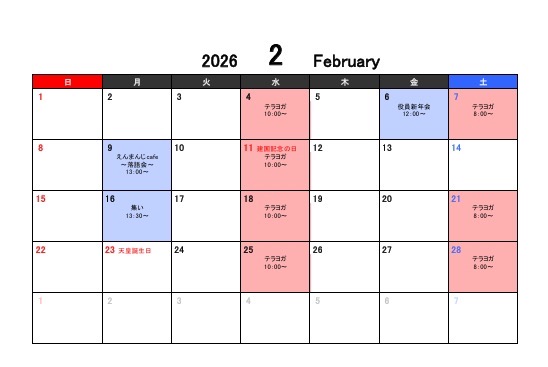 お知らせ 2026/02/02 令和8年2月の行事予定 2月は6日(金)役員新年会9日(月)えんまんじcafe〜落語会〜16日(月)集いを予定しております。 テラヨガは14日(土)以外の水曜日と土曜日に開催中です。心身の健康のためにも、どうぞそちらもご利用ください。 月忌、法事などのご予定は早めにお知らせください。早い方は1年前に予約されています。また法事などの場合、どうぞ2、3日前にもう一度お電話でご確認くださいませ。