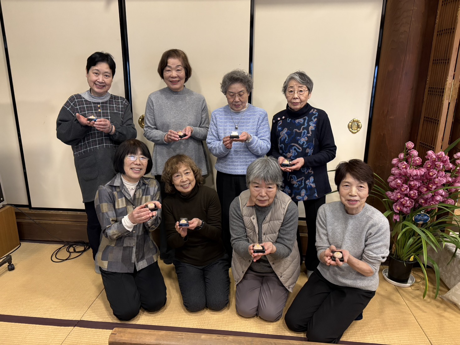 皆さんとってもお上手で、予定より早く終わりました。お抹茶をいただきながら、自分で作った練り切りは格別だったようです。またお家でご家族と楽しんで下さいね。