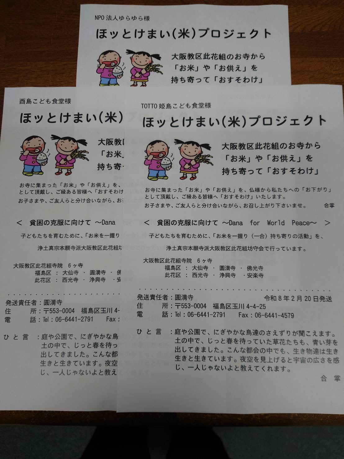 これからも皆さんからのお気持ち届けて参りたいと思います。