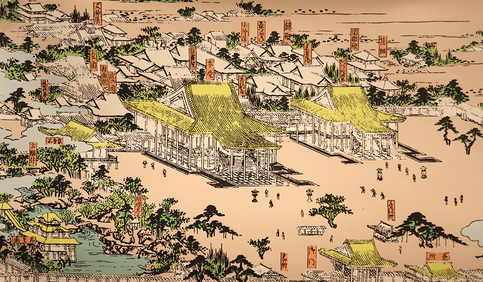 福島区玉川の新なにわ筋沿いに甍(いらか)のそびえる圓満寺。この圓満寺の由来についてお話いたしましょう。時は今を去る約490年前の戦国時代。このあたりは野田村と称し、村人は半農半漁の生活を送っていたようです。当時は、本願寺第8世・蓮如上人(しょうにん)の登場により本願寺教団は急速に拡大し、野田村の人々もすべて本願寺の勢力下にあったと思われます。1533(天文2)年8月9日、本願寺第10世・證如上人(しょうにん)が野田村を訪れた時不意に敵勢に襲われ戦闘となりました。野田村の人々は證如上人を守るため一丸となって戦い二十一人が生涯橋(下福島中学校裏)あたりで殺害されたのです。證如上人は泉州方面に逃げられたが、この悲報を聞き野田村の村人たちに一命をとりとめた感謝の気持ちを記した一通の書状をしたためられました。この書状は現在圓満寺に所蔵しており、2003(平成15)年に大阪市有形文化財となりました。そして、翌1534(天文3)年12月、殺害された二十一人衆の末代までの供養とこの事蹟を末代まで伝持するために野田村の地に一宇の坊舎が建立されました。これが圓満寺のはじまりであり、その時御本尊として證如上人より拝受した阿弥陀仏画像も圓満寺に所蔵しており、これも大阪市有形文化財に指定されました。