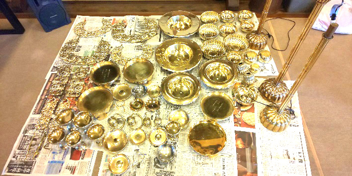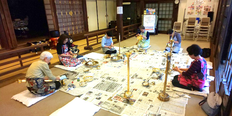 仏具を綺麗にすることを「おみがき」といいます。5月の法要に向けておみがきしています。