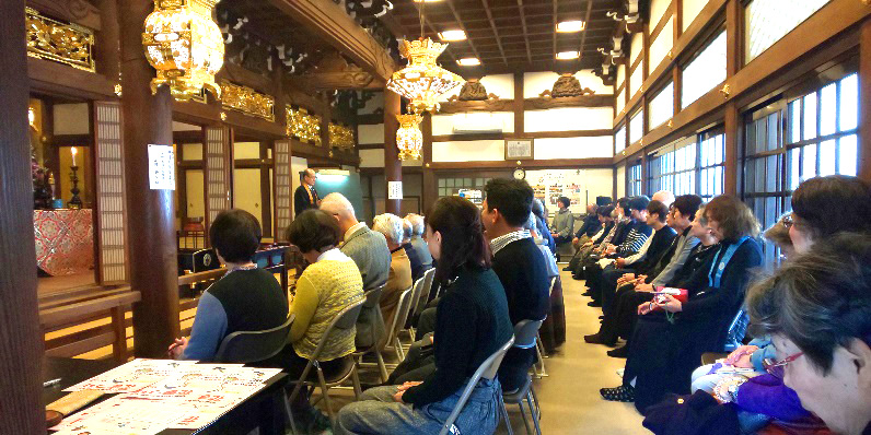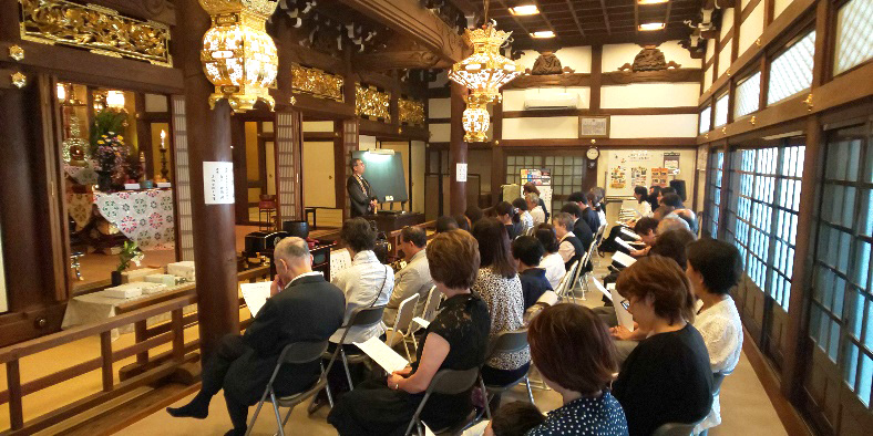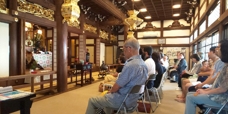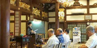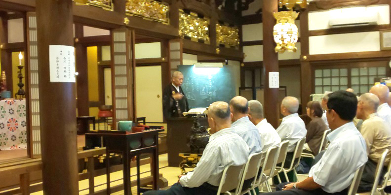 毎年、貴島信行先生に法話をしていただきます。先生のお話を聞きたいと沢山の方がお参り下さいます。