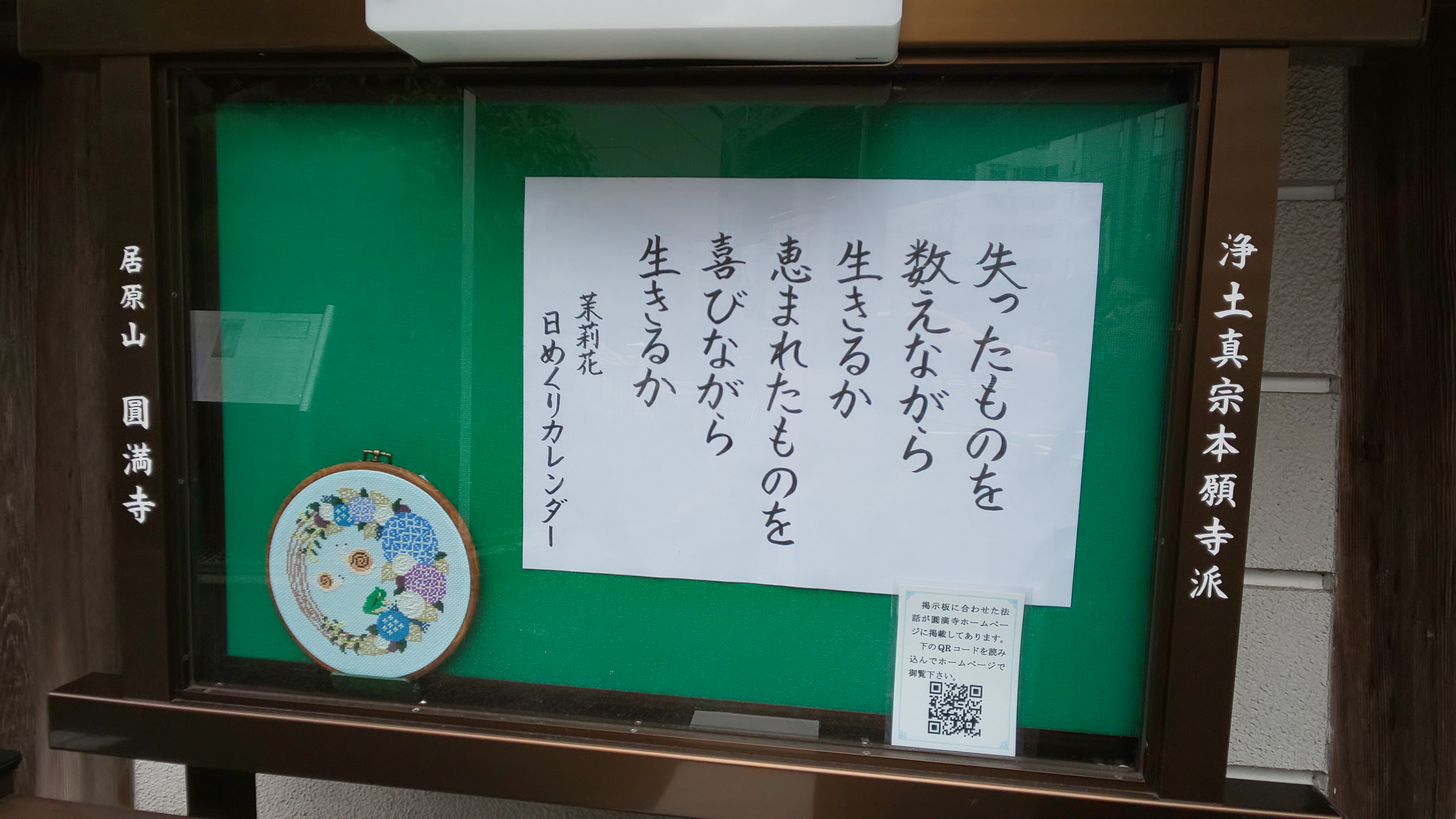 「過去があって今の自分があり、今の自分がまた未来を創っていく。そしてその自分が存在できるのは、無数の恵まれたもののお蔭様である。有難うございます。南無阿弥陀仏。」このように生きてゆきたいものですね。称名。【副住職】