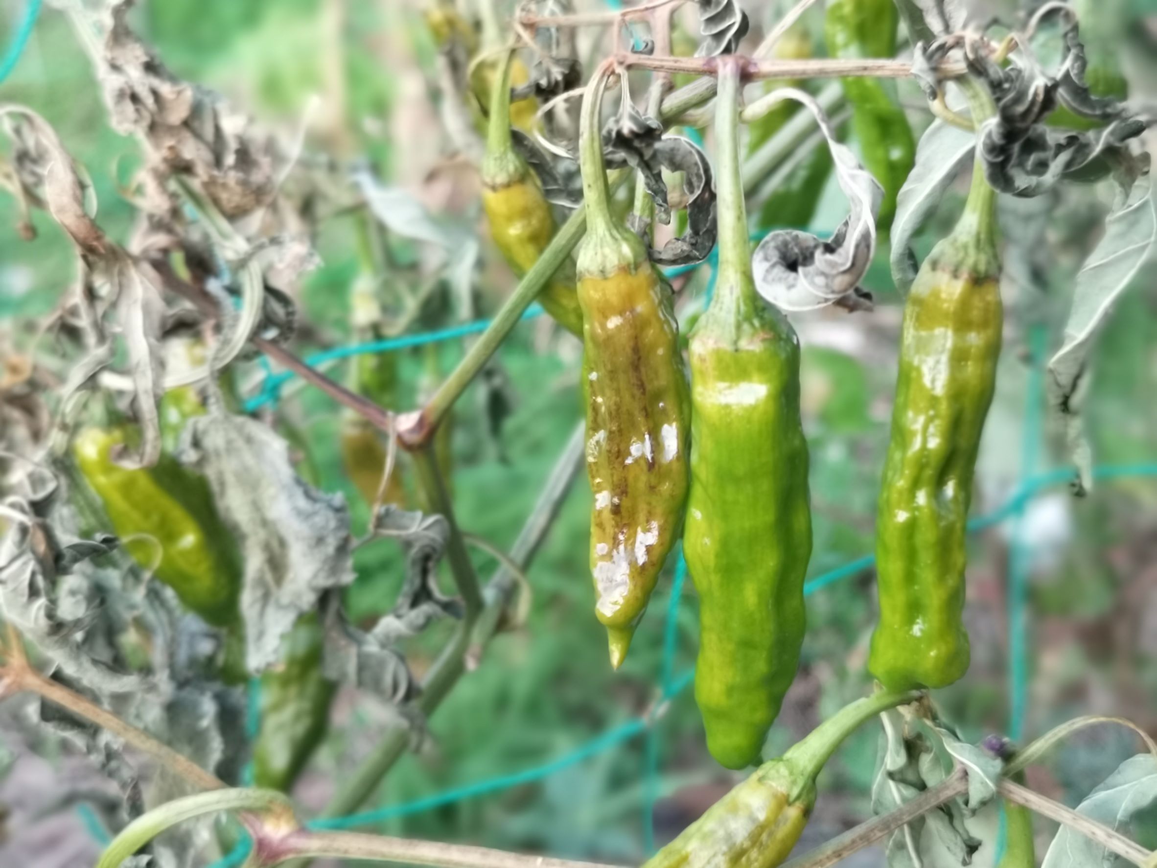 一週間後、原因が判明しました。日が暮れてから、懐中電灯で様子を見に行くと、全長5~6センチの蛾の幼虫が四匹見つかりました。ここまで成長したのに、申し訳ないと思いましたが、退治することにしました。それからは、虫食いは無くなりましたが、万願寺とうがらしに実がなるかどうか、微妙なところです。