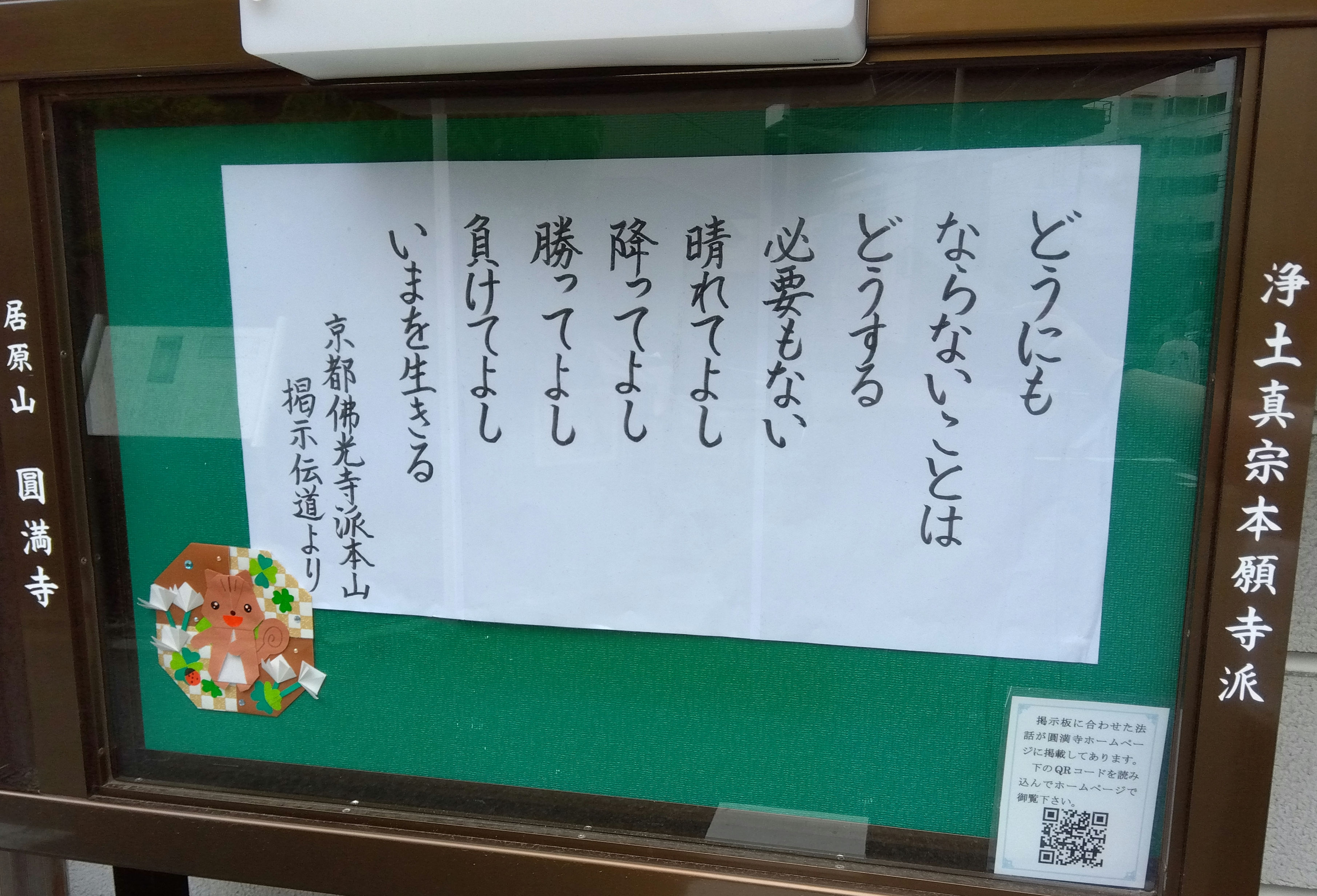 ただ一つ重要なことは、いま自分が「勝負の世界」に生きたいのか、「調和の世界」に生きたいのかをはっきりさせることだと思います。これはどちらが良い悪いではなく、根本的な考え方の違いであることが分かれば、「どうする必要もない」というよりも、「全てが必要なことでありました」と受け止めていける世界が開かれていくような気がします。称名。【副住職】