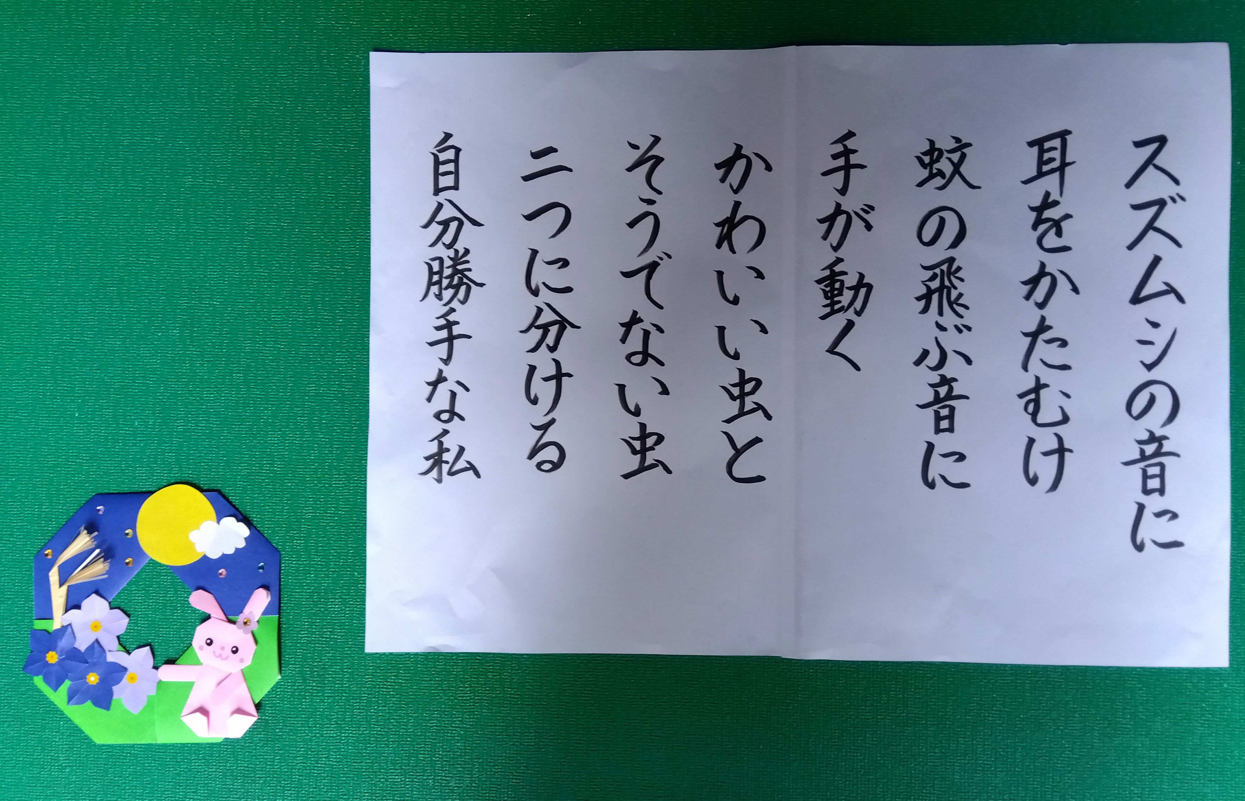 スズムシの音に 耳をかたむけ