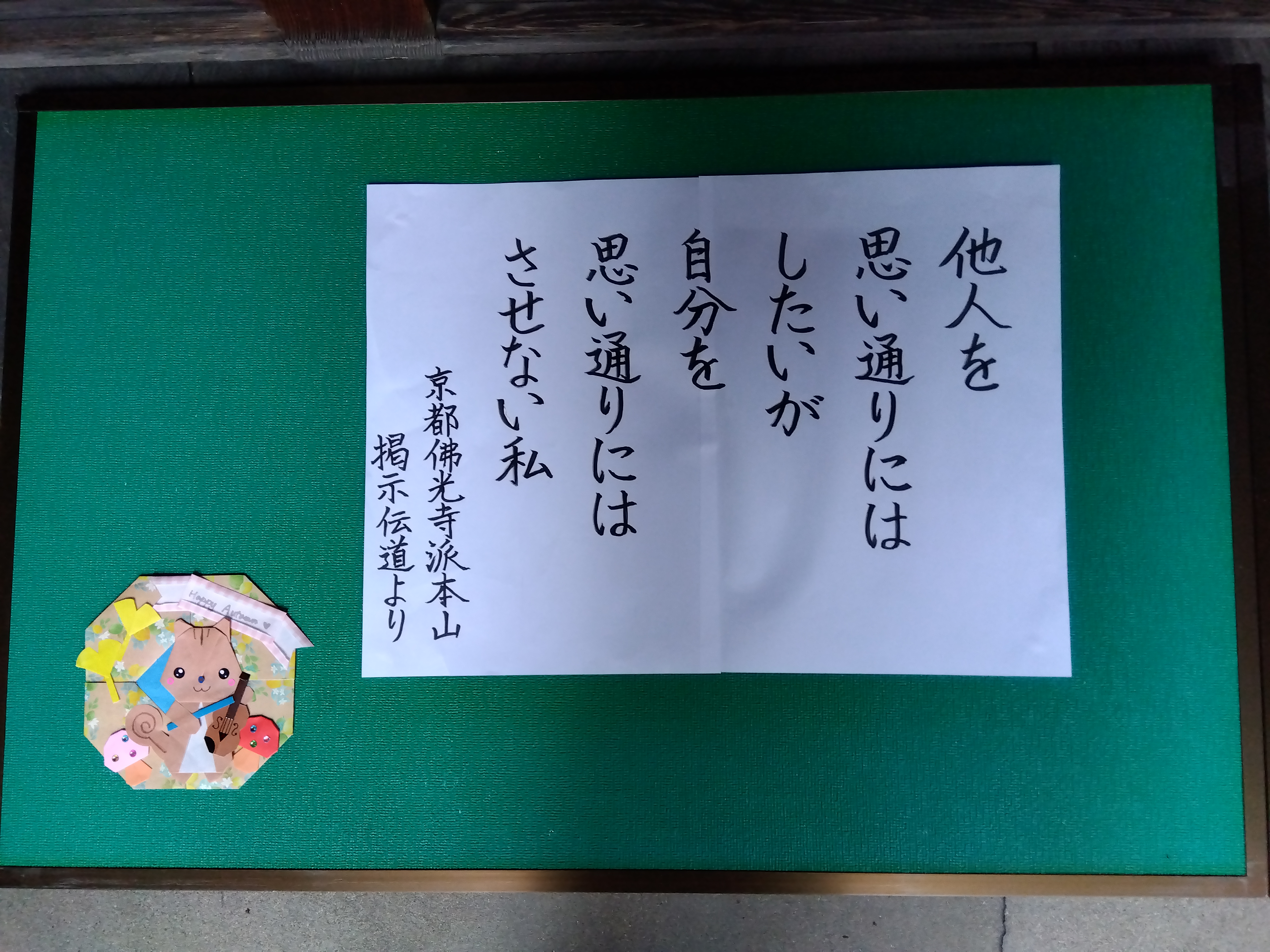 一方で自分を思い通りにさせないとは、一体どういうことでしょうか。それは只今の自分に満足出来ていないということだと思います。自分が満足した状態でいるには、どうしたら良いのか考える必要があります。それには、まず自分に素直になることです。お釈迦様は繰り返し、自己こそが自分の主であると仰っています。他人の意志を尊重した上で、自分の意志をはっきり伝えることが出来れば、自ずとお互いが思い合える(思い通りになる)関係が生まれることでしょう。称名。【副住職】