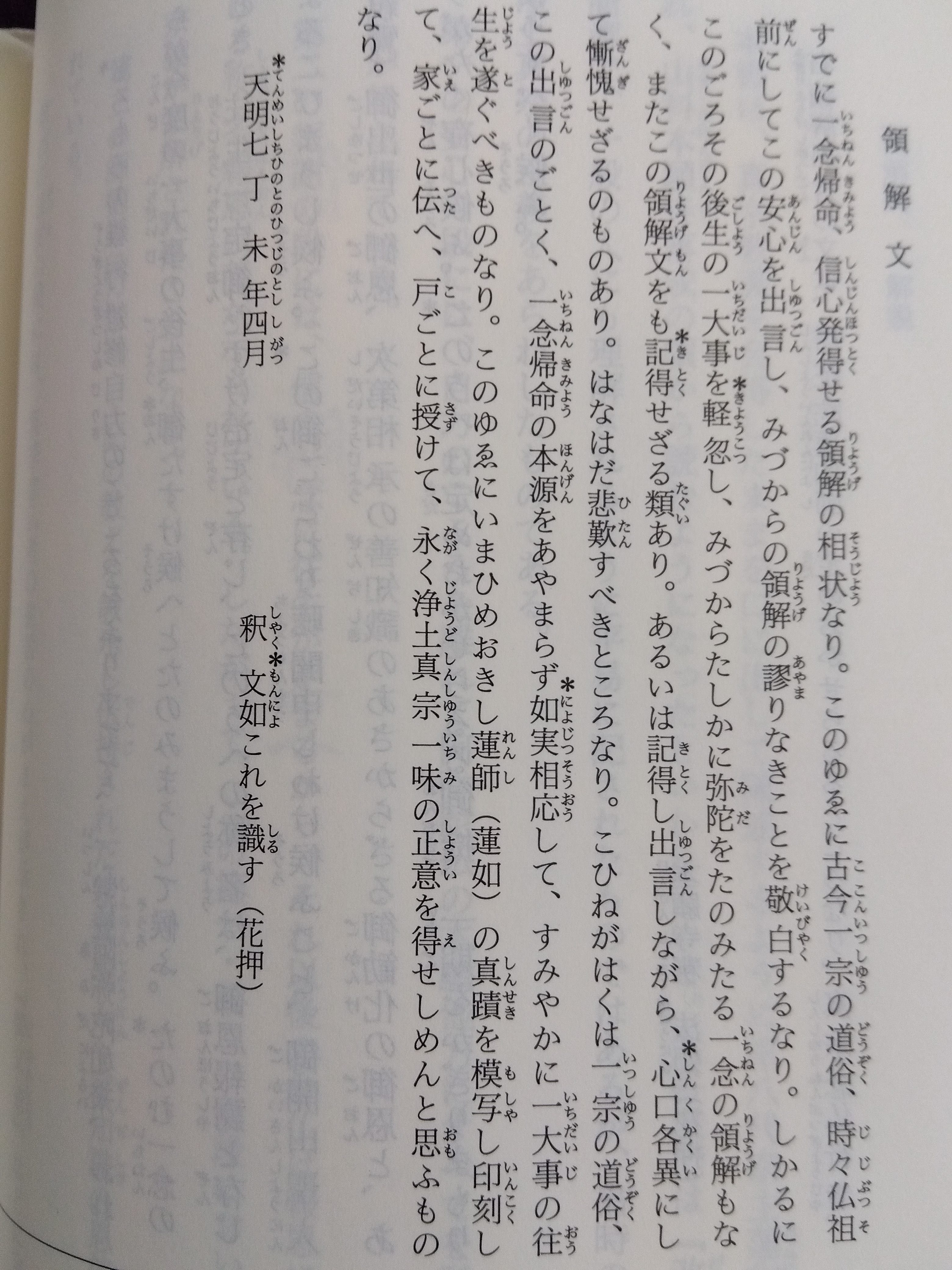 つまり「領解文」は、浄土真宗の根本である「信心正因、称名報恩」が領解されたことになると註釈版聖典には解説されています。