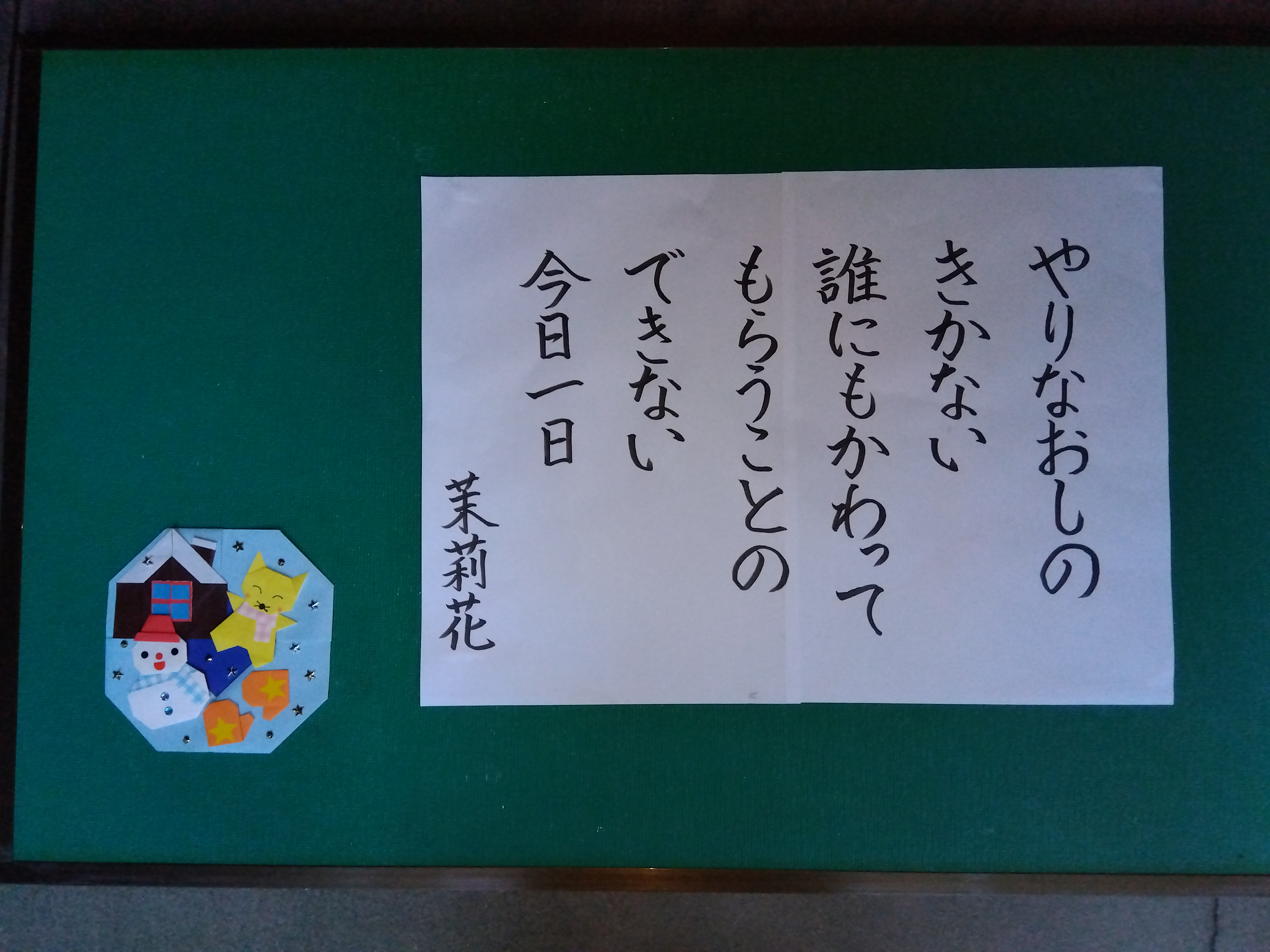 「それは当たり前のことですね。」と誰もが思います。ところが、「今日というやりなおしのきかない、誰にもかわってもらうことのできない一日を十分に満足して過ごせましたか?」と問われると、如何でしょうか。「今日も十分に満足して、生ききりました。」と言えるでしょうか。