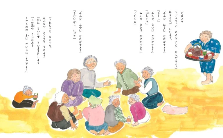 はるさんの住む村は沢山の人で賑わっていたけれど、年々過疎化が進み数える人しかいなくなりました。嘆いてばかりもいられない、と仲良しの皆で桜の苗を育てて少しずつ植えることにしました。