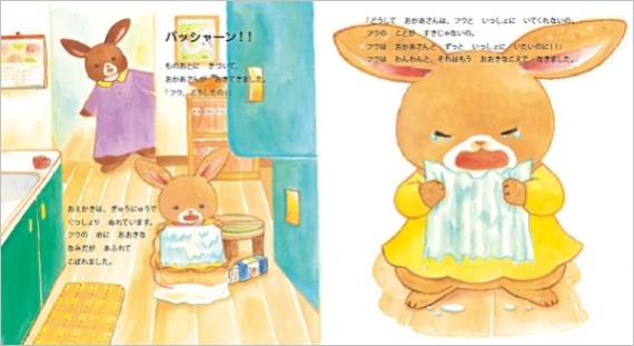 フウちゃんはお母さんのことが大好きで、幼稚園でお母さんを描きました。上手に描けたのでお母さんに見せたくて早く会いたいですが、お仕事でなかなか会えません。朝になり、ご飯を食べる時に描いた絵を汚してしまいました。フウちゃんはお母さんへの想いが溢れて泣いてしまいます。