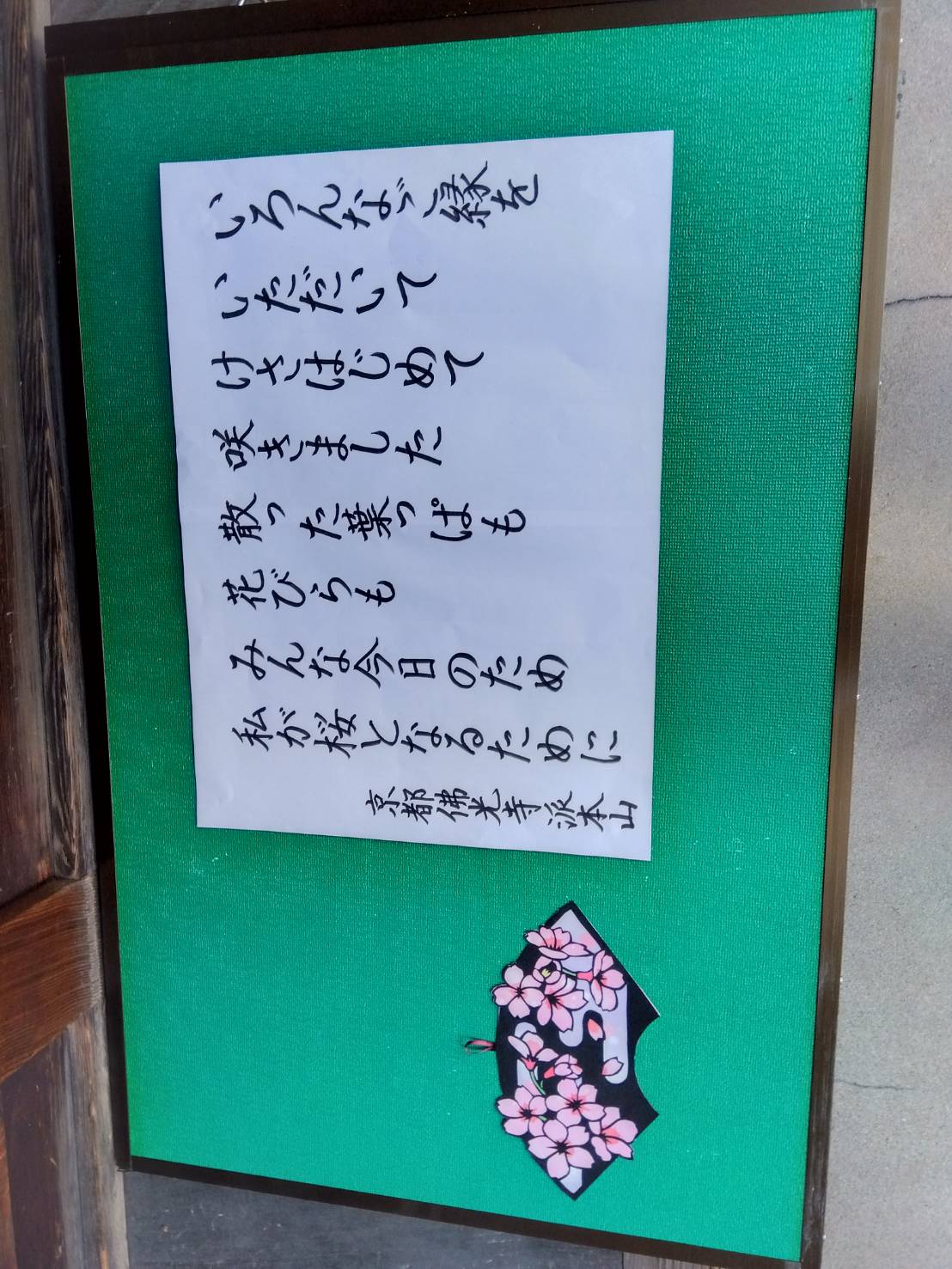 桜は、分かり易く宇宙の真理を教えてくれています。いろんなご縁をいただくとは、「因縁仮和合(いんねんけわごう)」しているということです。ですから全ては変化(諸行無常)し、全ての物質は仮に和合しているもの、幻(諸法無我)です。今年もまた、桜を見ながら無常を感じ、今までお育て頂いた無数のご縁に感謝しつつ、新たなスタートを歩ませて頂きましょう。称名。【副住職】