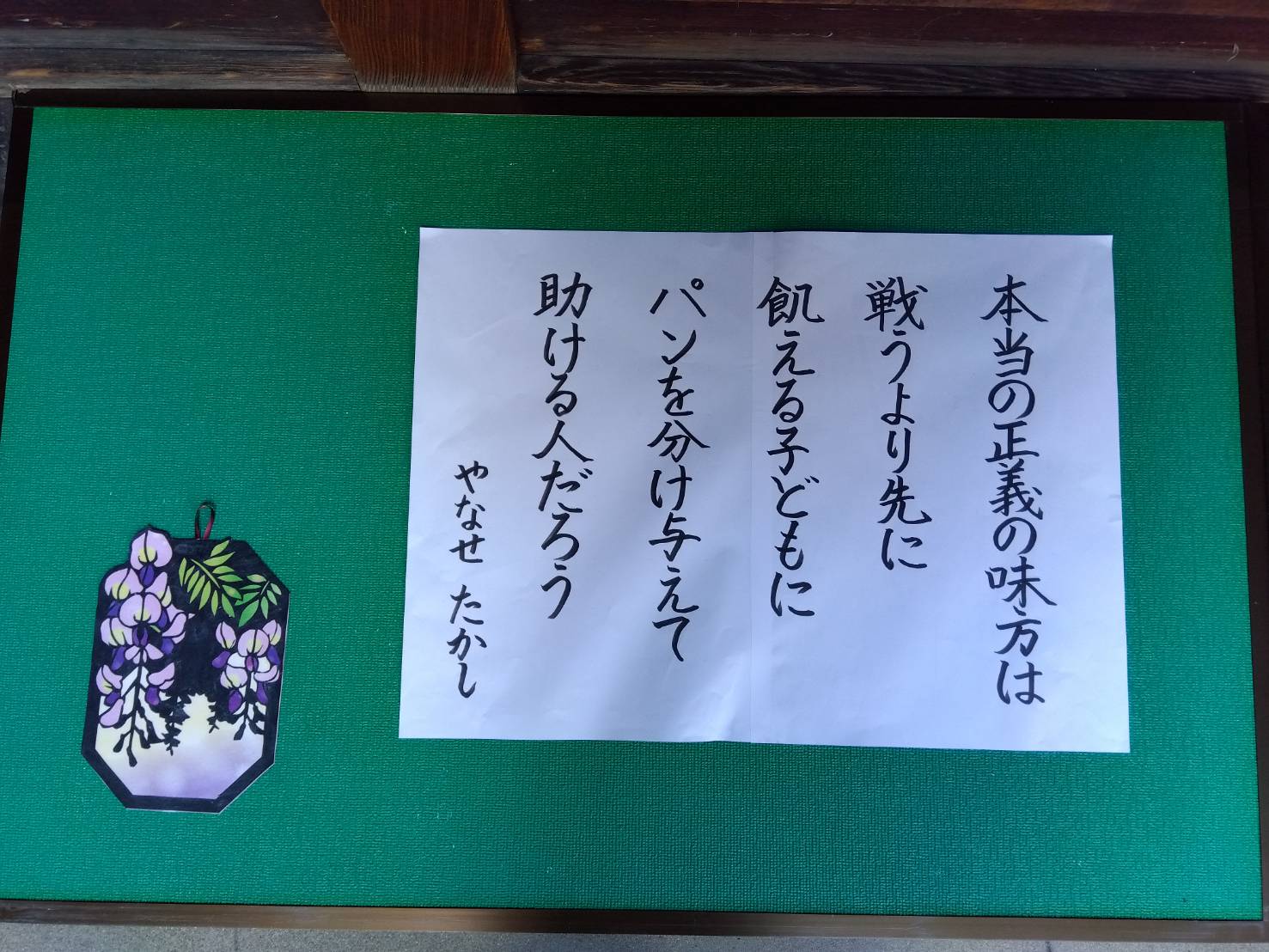 今月の掲示板は、『それいけ!アンパンマン』の作者、やなせたかしさんの言葉です。今、NHKの連続テレビ小説では『あんぱん』が放送されていますが、先月の『御堂さん』にも、「想いをカタチに」という特集の中で、アンパンマンのことが紹介されていました。その記事を読んで、私のアンパンマンに対する偏見が取り除かれました。私はどうしていつもばいきんまんは悪者で、いつもアンパンマンにやっつけられてしまうのかということに疑問を持っていたのです。記事にはこのように書かれていました。