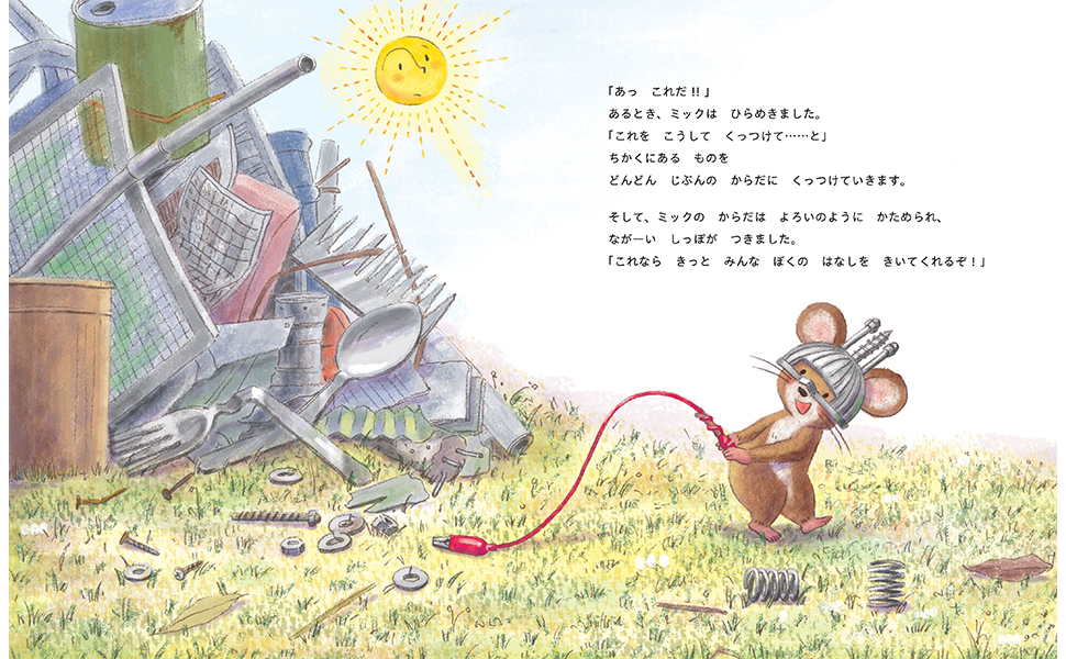 ねずみのミックは仲間たちと暮らしていますが、自分に自信がなくてなかなか遊びに誘うことが出来ません。どうやったら誘えるようになるのか、考えて工夫し始めます。