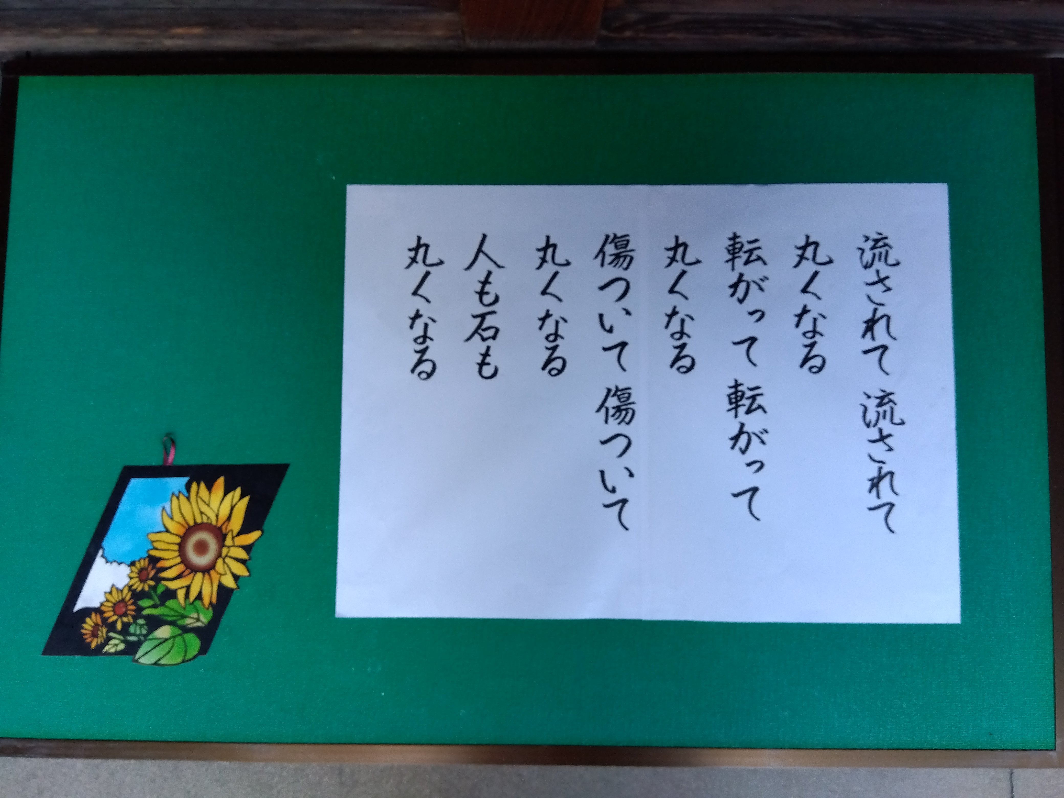 石というものは、水の流れによって丸くなるものですね。小学生の頃、学校の林間学校で、鮎のつかみ取りをしたことがあります。河原の石はごつごつしていましたが、川の底の石は丸くつるつるしていたことを思い出しました。