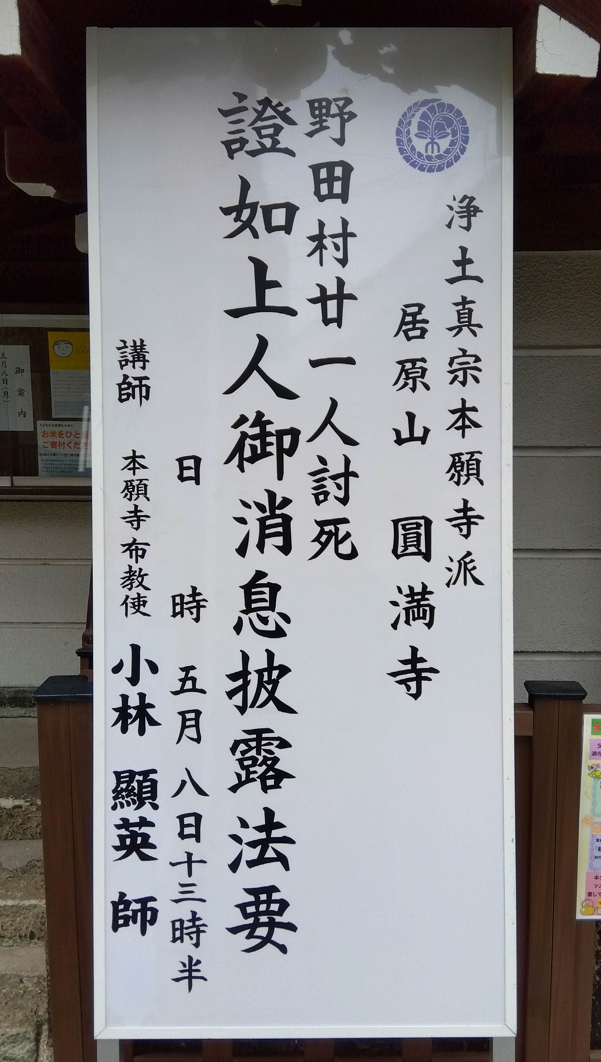 5月8日(月)は野田村二十一人討死證如上人御消息披露法要です。