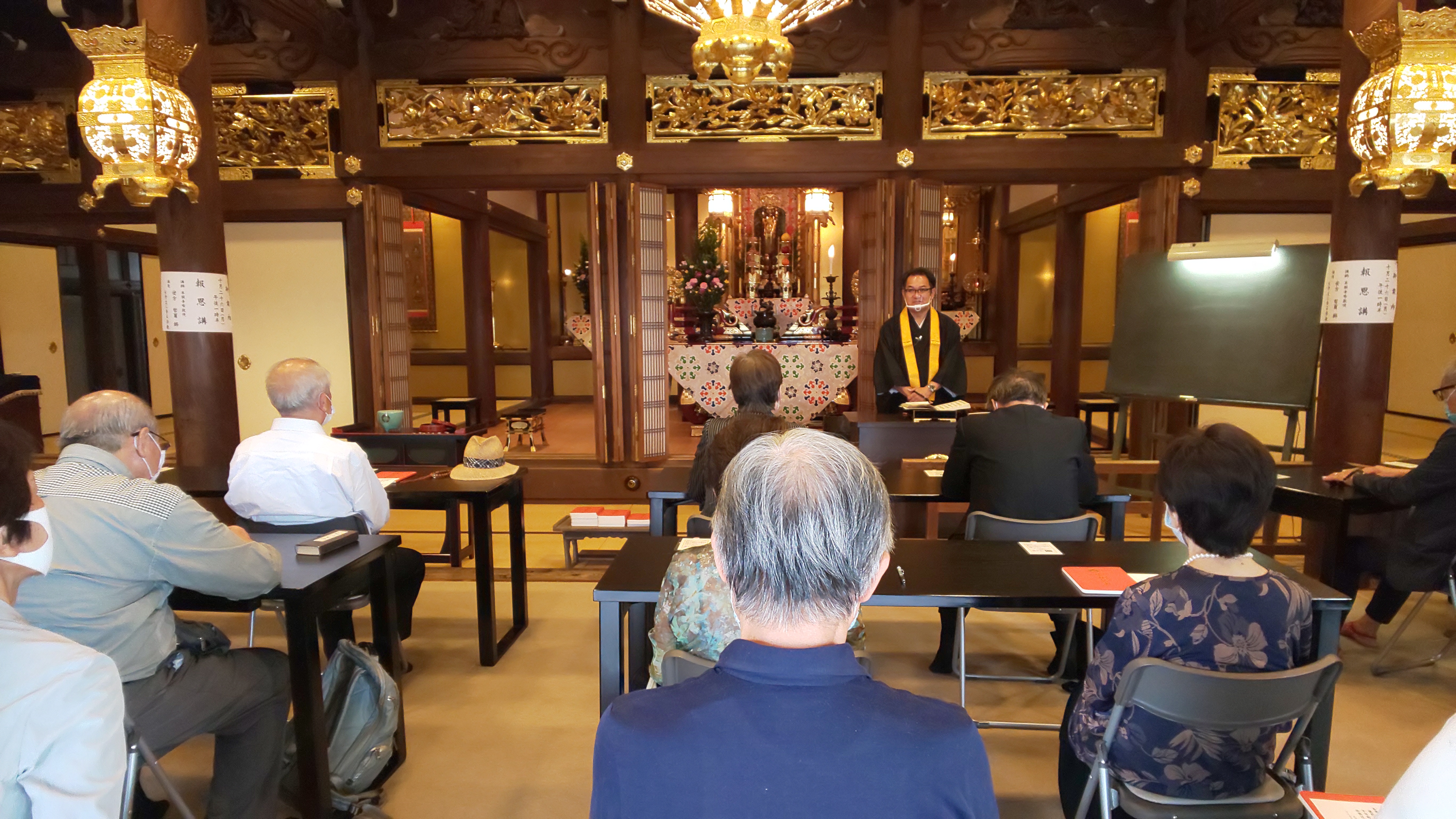法要・法座 2020/09/20 秋季彼岸会永代経法要の御報告 皆様のお陰で秋季彼岸会永代経法要を無事に勤める事が出来ました。今年1月の法座以来、半年以上ぶりの法要でした。色々と心配することもございましたが、コロナ禍でも沢山の方にお参りいただき、大変有り難いご縁でした。 この度の御講師は何度か来ていただいている、石崎博敍先生でした。親鸞聖人が書かれた御和讃をわかりやすく読み解いて下さいました。 下のPDFに法要のまとめを載せていますので、クリックして御覧下さいませ。 PDF 戻る