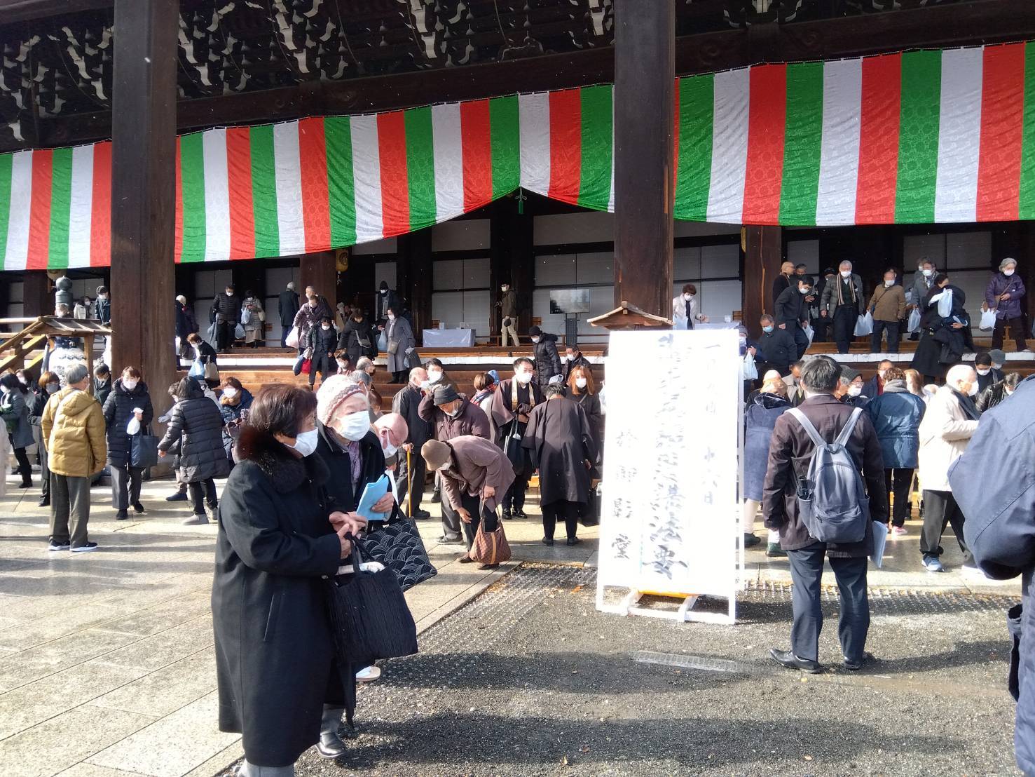 親鸞聖人のご命日法要、御正忌報恩講法要です。寒波到来で非常に寒い中でしたがたくさんの方がお参りされていました。お日中の法要に参拝しました。午後からは木辺派本山錦織寺参拝予定でしたが、雪のため中止に。急遽八つ橋のお店に寄ってお土産タイム。予定変更になりましたが、参加された皆さん、色んな方と話されて仲良くなられるなど、大変喜ばれました。