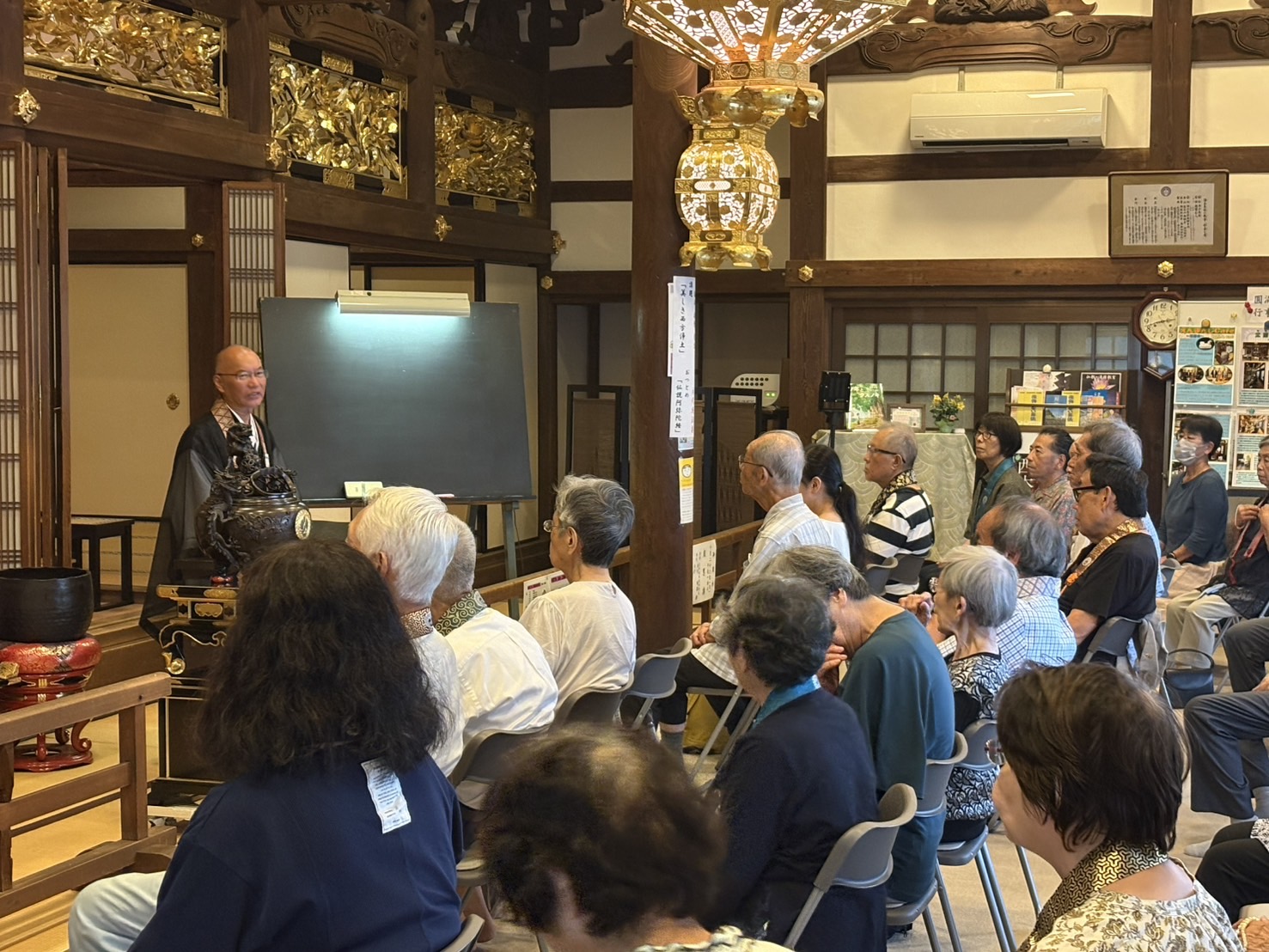 植木先生より「美しき西方浄土」とご講題で、「仏説阿弥陀経」を説きながら、また、谷本さんの百回忌のご法事や当山の9月の掲示板の言葉に準えながらわかりやすくお聞かせいただいた法要でした。