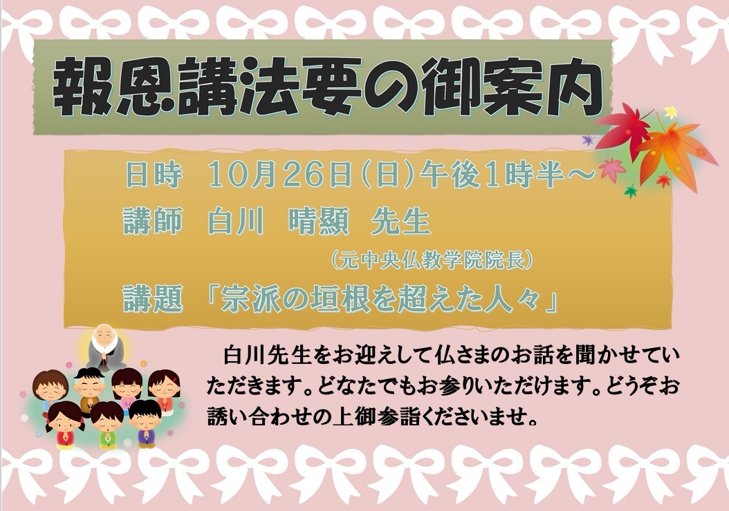 ご講師はお馴染みの白川先生で、わかりやすいお話をして下さいます。どうぞ皆様御参詣下さいますよう御案内申し上げます。
