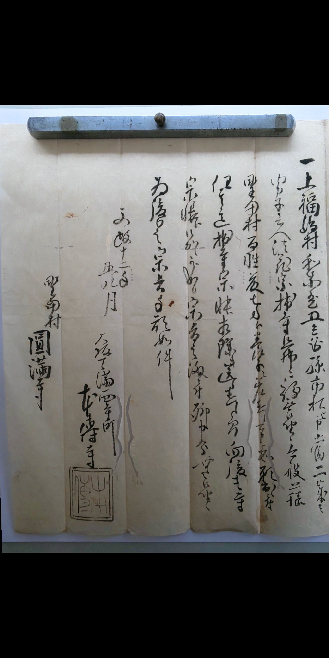 拙寺檀家の藤野田村百姓藤七方へ養子に入る際送られた書状です。