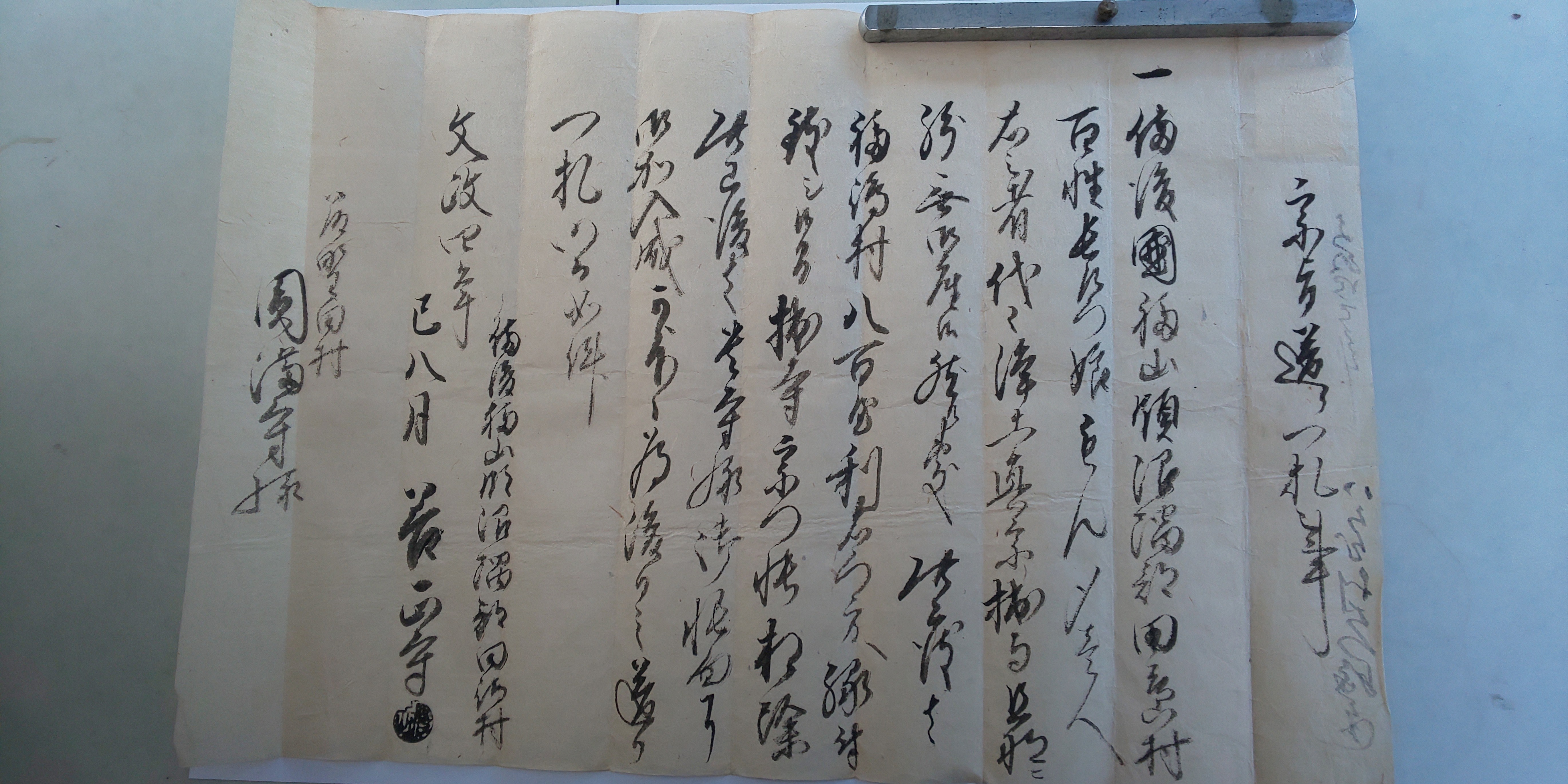 文政四年(1821)八月に善正寺檀家の備後国福山領沼隈郡田