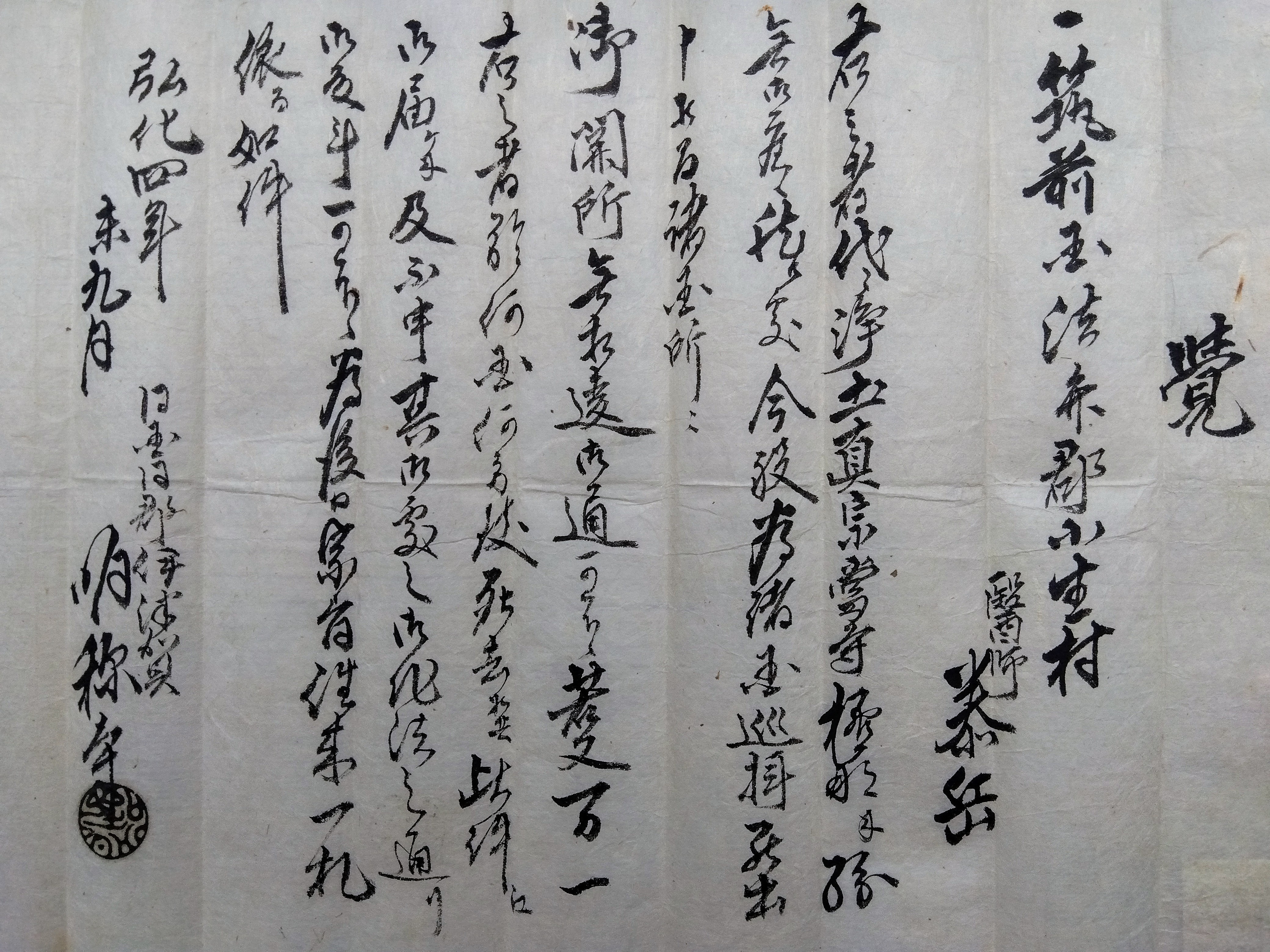 筑前国(現在の福岡県)法弁郡小生村の医師泰岳が諸国巡拝の為壇那寺の明称寺から受け取った