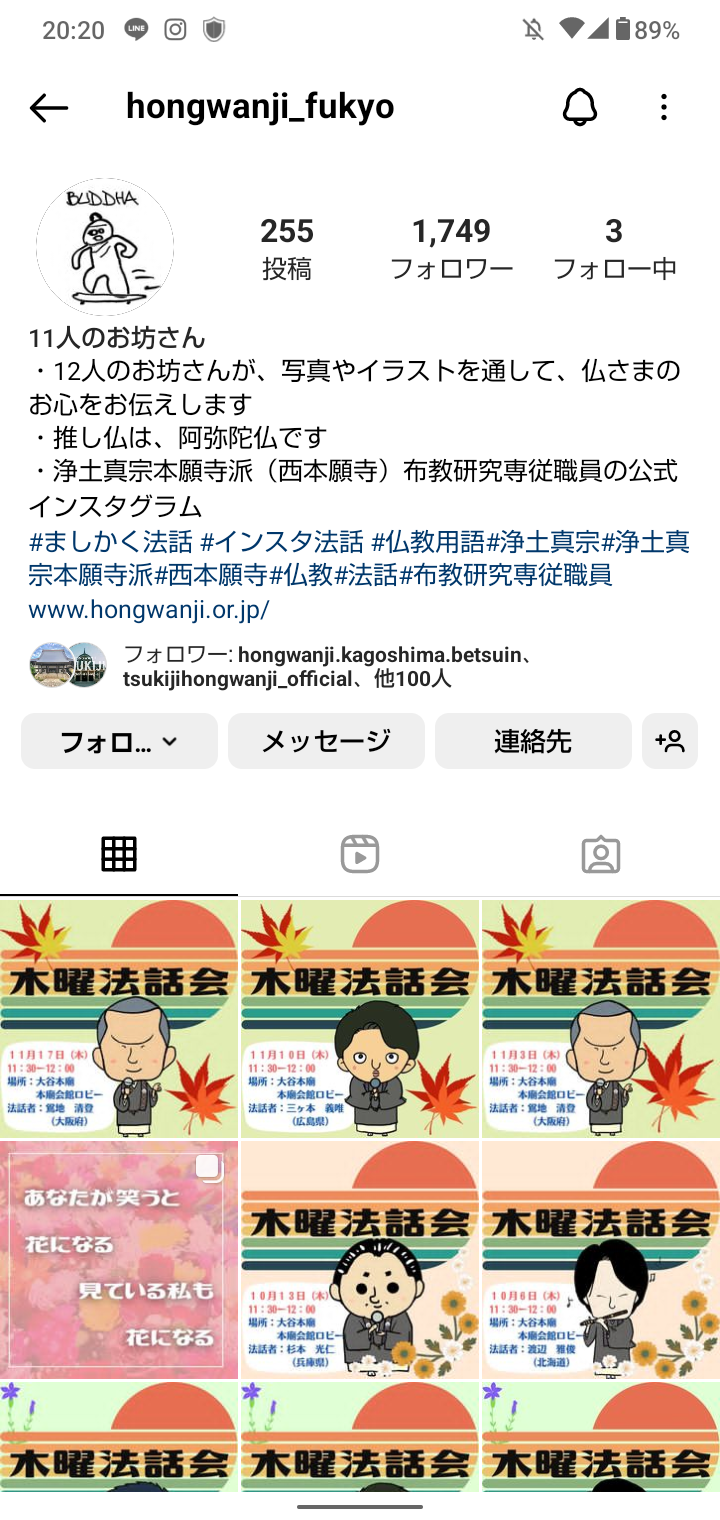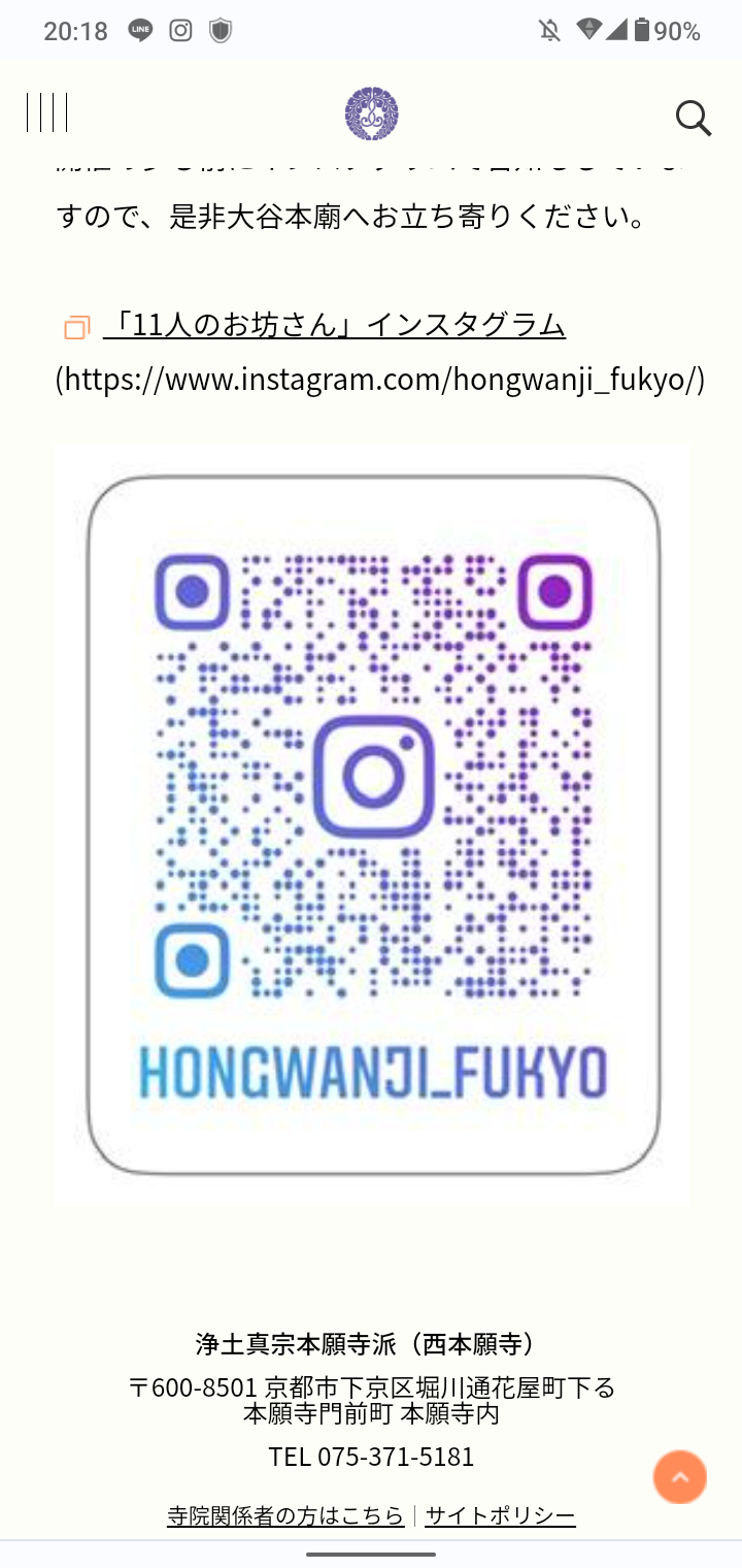 写真のQRコードを読み込むか、外部リンクをタップしていただくと、本願寺布教使さんのインスタグラムを見ることが出来ます。