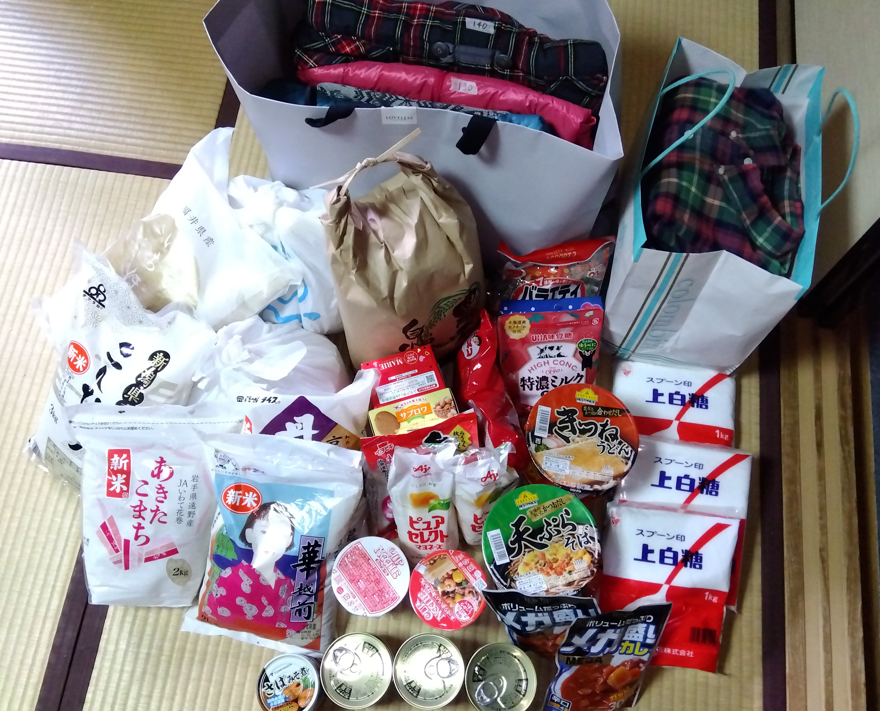 お米、レトルト食品、カップラーメン、缶詰、調味料、お菓子等々お届けすることが出来ました。