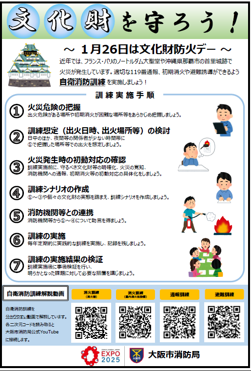 外部リンクより、大阪市のホームページにて「文化財防火デー」について詳細が掲載されています。よろしければそちらも御覧下さい。