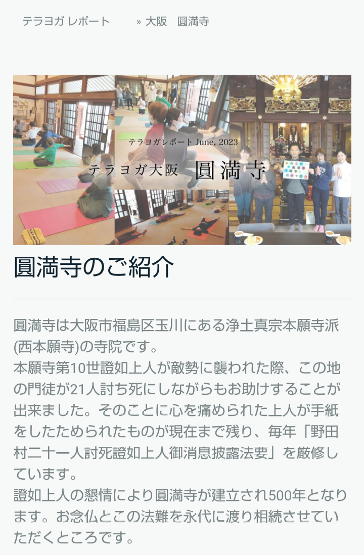テラヨガのホームページで「テラヨガ圓満寺」のレポートの紹介が掲載されました!