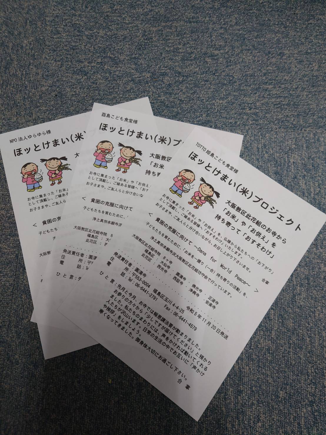 今月も「ほッとけ米プロジェクト」にご協力いただきまして、ありがとうございました。