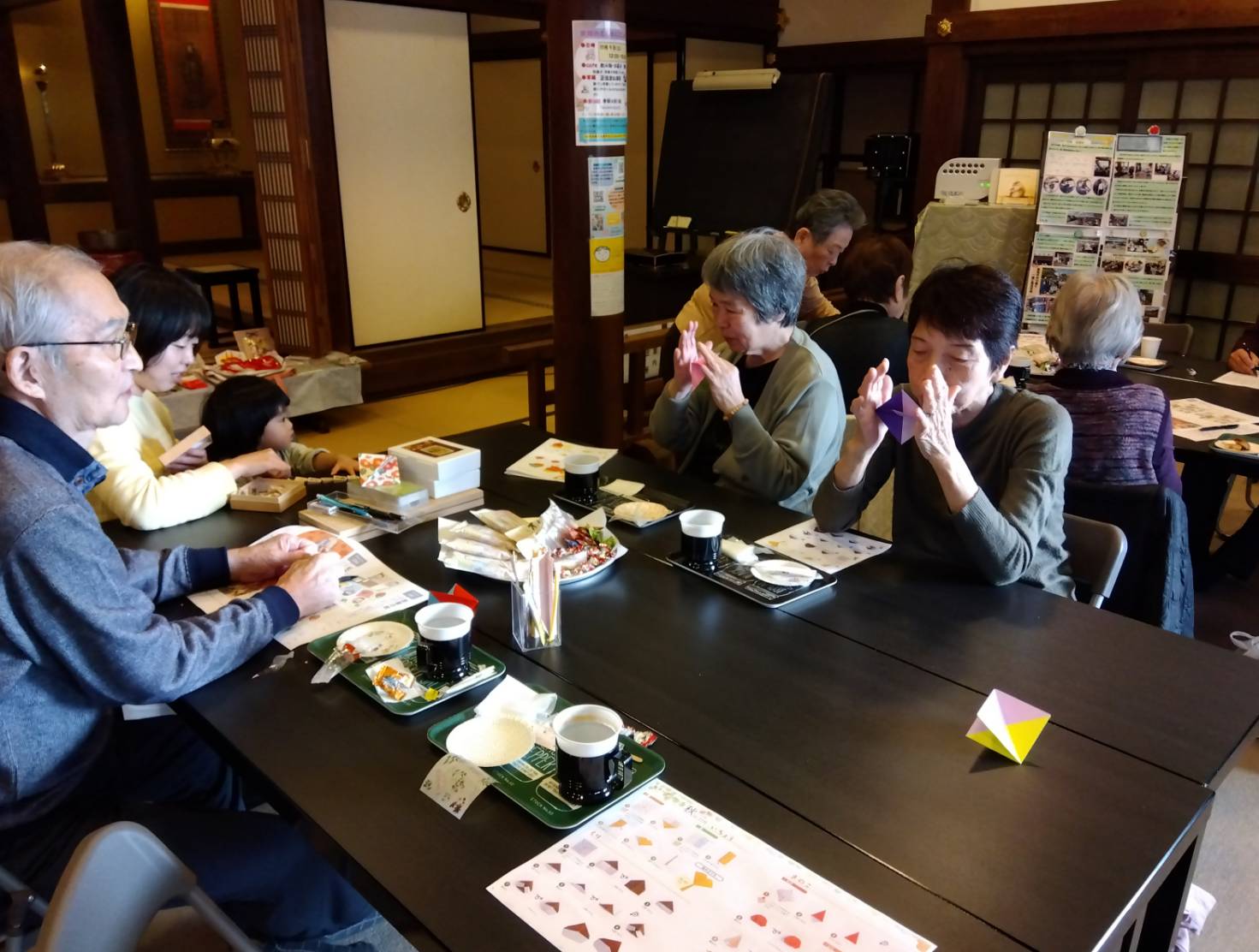 初めての方も多く、活気ある時間になりました。毎月の絵本紹介でおいてある本を読み聞かせる方や、写経、折り紙やナンプレを楽しむ方等、皆さんそれぞれゆっくりと楽しんで下さったように思います。