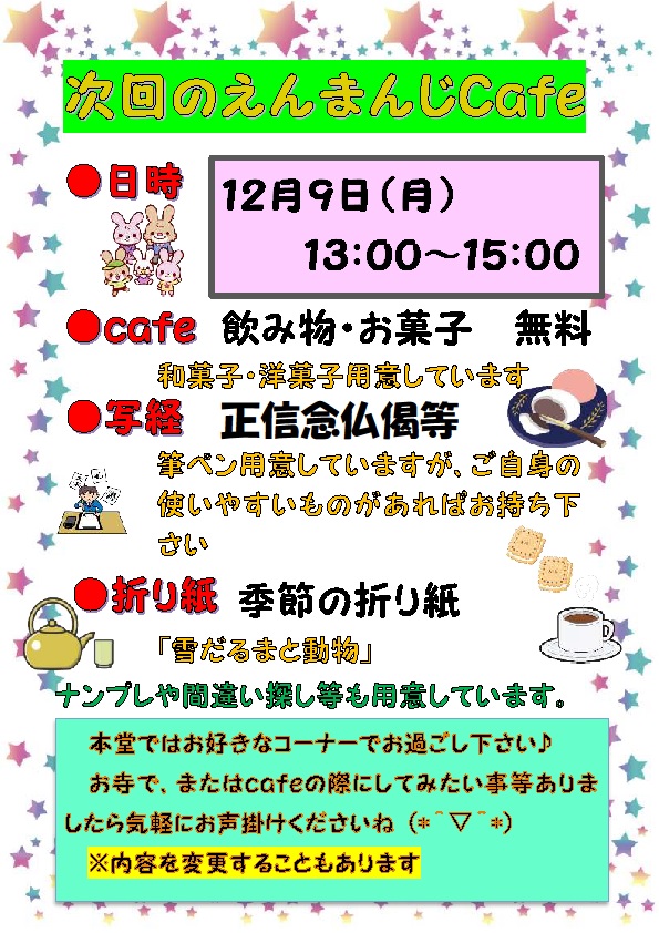 えんまんじcafe24’12月のご案内