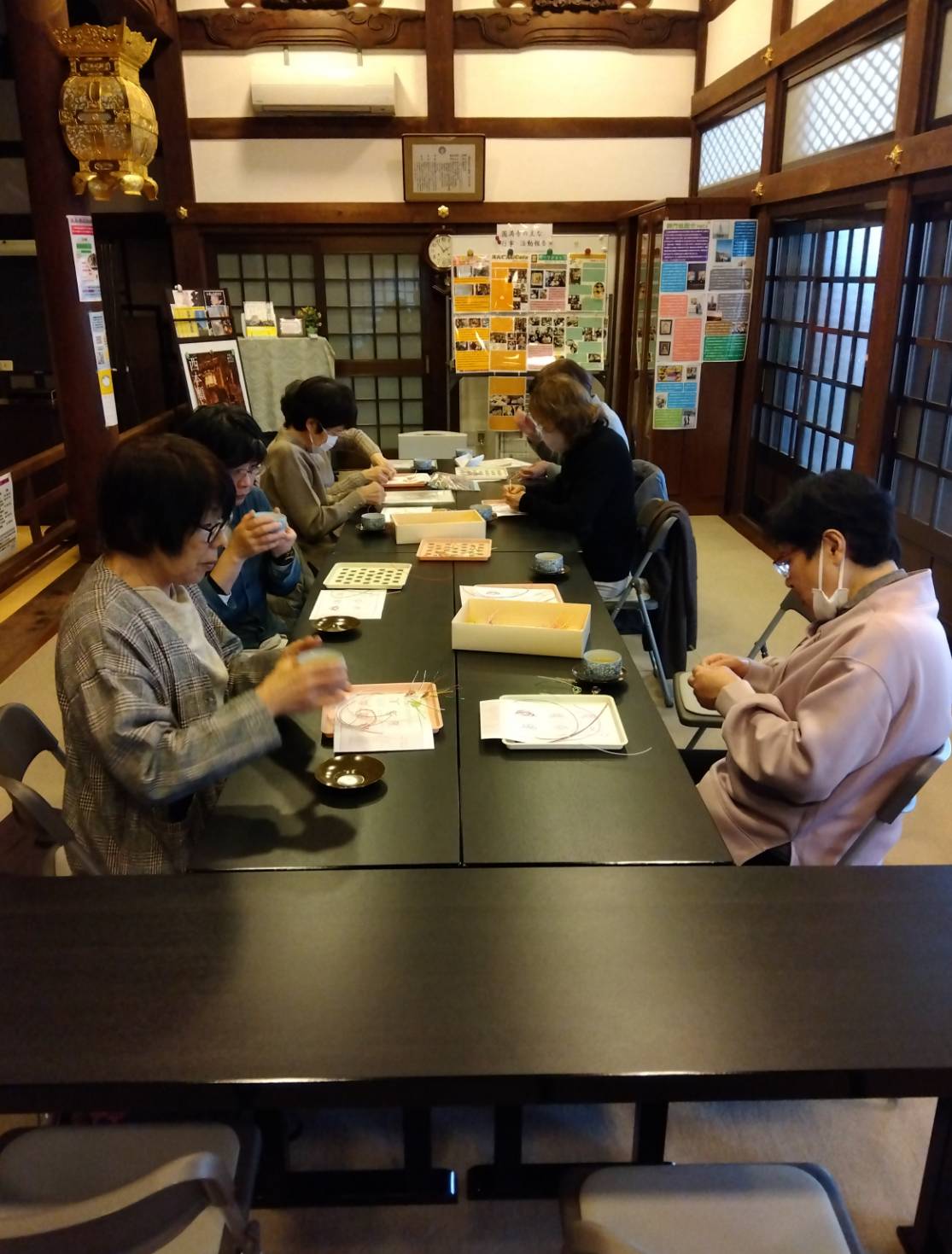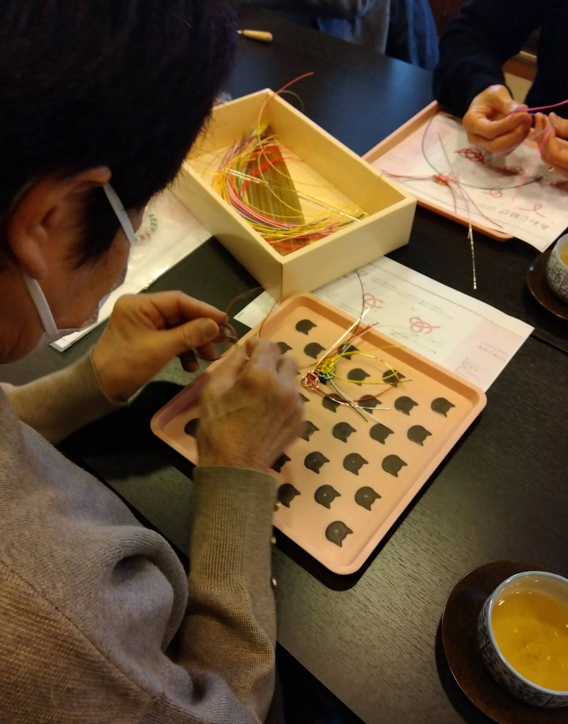 お知らせ 2025/03/16 ワークショップ令和7年第2回のご報告 本日は第2回のワークショップで水引で作るあわじ結びの続きでした。皆さん常に笑顔。いろんなお話ししながら手先もしっかり動かしてとっても楽しい時間でした。本日の詳しい様子はPDFをタップするとご覧いただけます。 来月も16日の予定です。どなたでも参加できますので、ご興味ある方は是非お声掛け下さい。