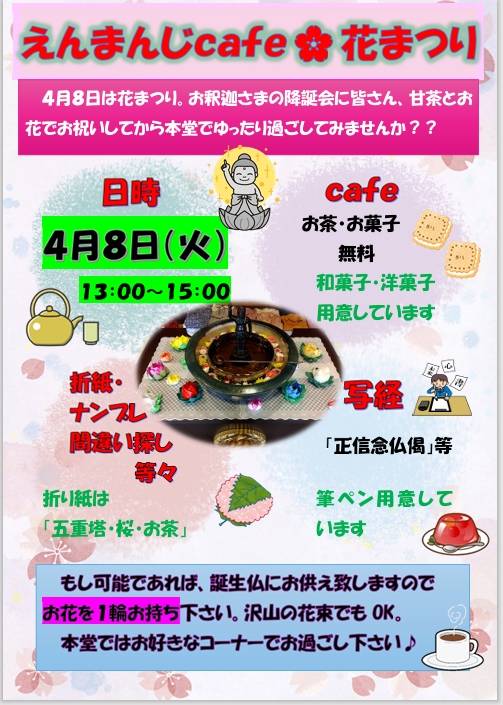 えんまんじcafe25’4月〜花まつり〜のご案内