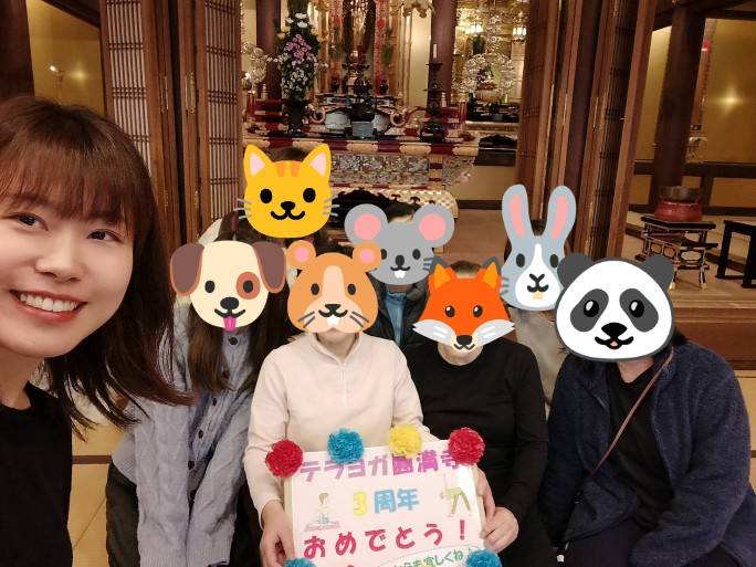 お知らせ 2025/03/26 テラヨガ圓満寺3周年 2022年3月から始まったテラヨガ圓満寺はこの3月で3周年を迎えました。初期からずっと続いている人、途中から続いている人、間は空いても続いている人、単発で来られる人、色々な方が参加されています。テラヨガのご縁でお寺の他の行事にも参加される方もいらっしゃいます。 老若男女経験、未経験問いません。自分と向き合うヨガ。でもメンバー仲良し♪心身健康に向き合うテラヨガ圓満寺、ご興味ある方は是非お声掛け下さい。