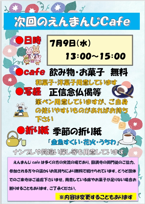 えんまんじcafe25’7月のご案内