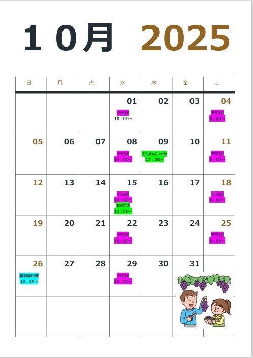 お知らせ 2025/10/01 令和7年10月の圓満寺行事予定 10月の行事予定です。・9日 えんまんじcafe 通常のcafeです。ゆったりとお過ごしください。・15日 おみがき 仏婦の方中心に報恩講法要に向けてお仏具をきれいに磨きます・26日 報恩講法要 講師 白川晴顯 先生 講題 「宗派の垣根を超えた人々」テラヨガは毎週水曜日10時~・土曜日8時~から開催中です。 お参り等の変更は早めにおねがいします。