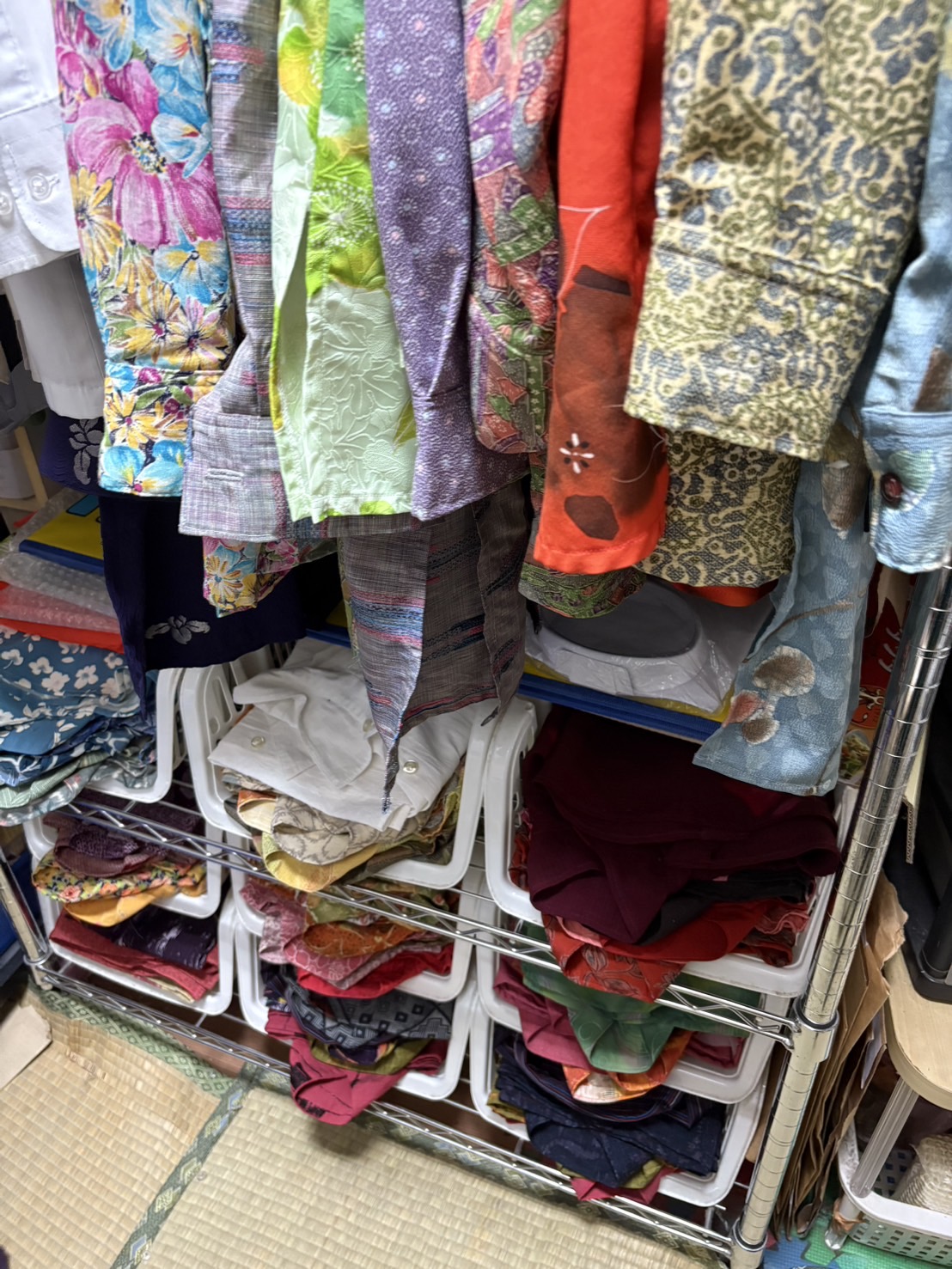 服はハンガーに掛けていても汚れないように、着なくなった白のカッターシャツを上から掛けておられました。いろんな所に工夫が見られて今回も私にとって学びの多い取材となりました。