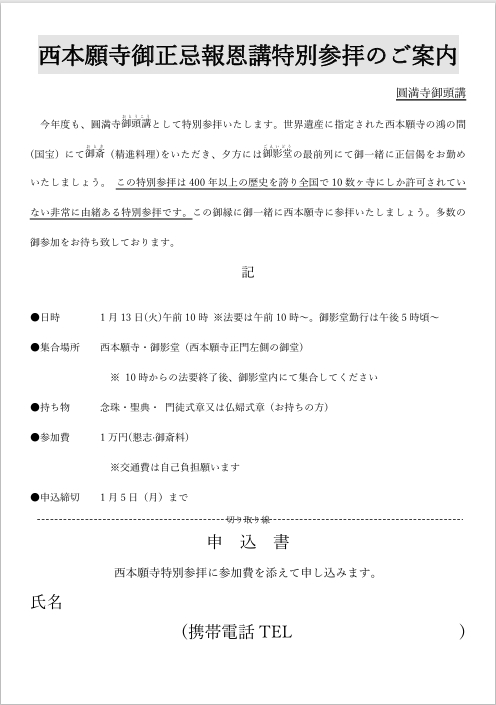 西本願寺報恩講特別参拝のご案内(令和8年)