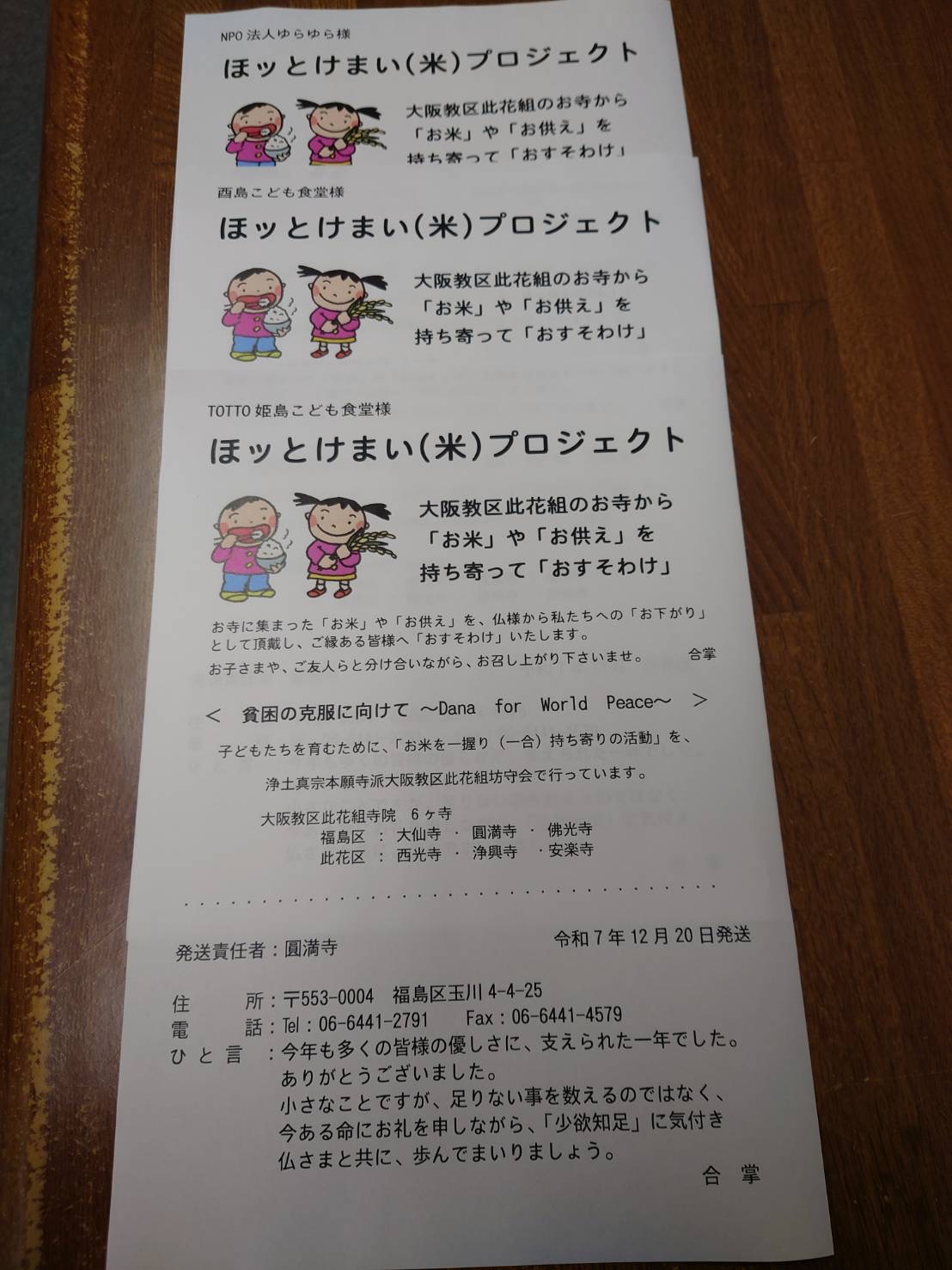 お知らせ 2025/12/23 ほッとけ米プロジェクト25'12月のご報告 今月もほッとけ米プロジェクト、多くのお心を寄せていただきました!お米やお菓子、おもちゃなどなど、3カ所の子ども食堂さんへ寄贈させていただきました。行事の際、お米用意してたのに忘れて来たから取りに帰るとおっしゃってくださる方まで。いつも子どもたちのことを思ってくださり、感謝しかありません。子ども食堂さんからも皆さんに宜しくと感謝されています。ホントにありがとうございます